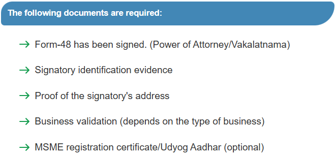 The applicant must sign a power of attorney (Vakalatnama)